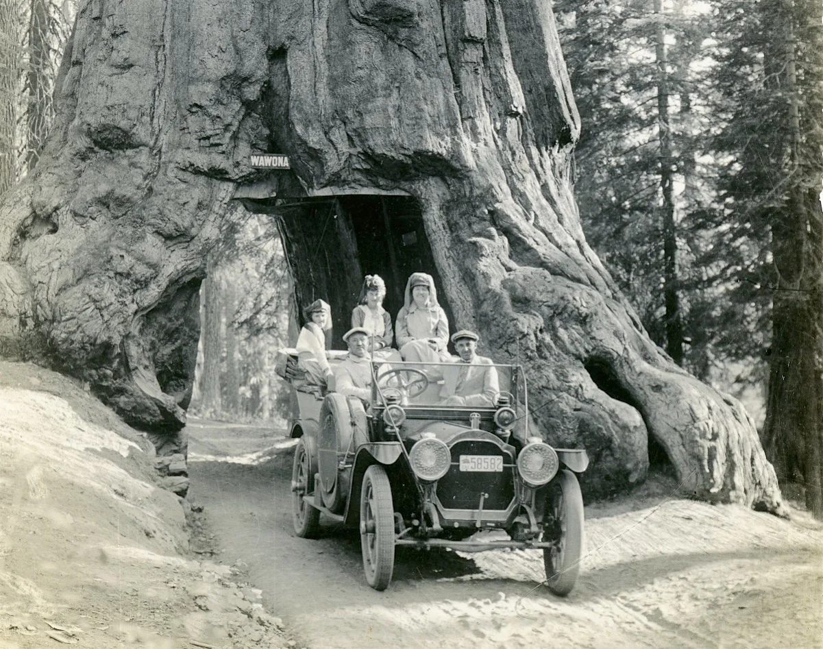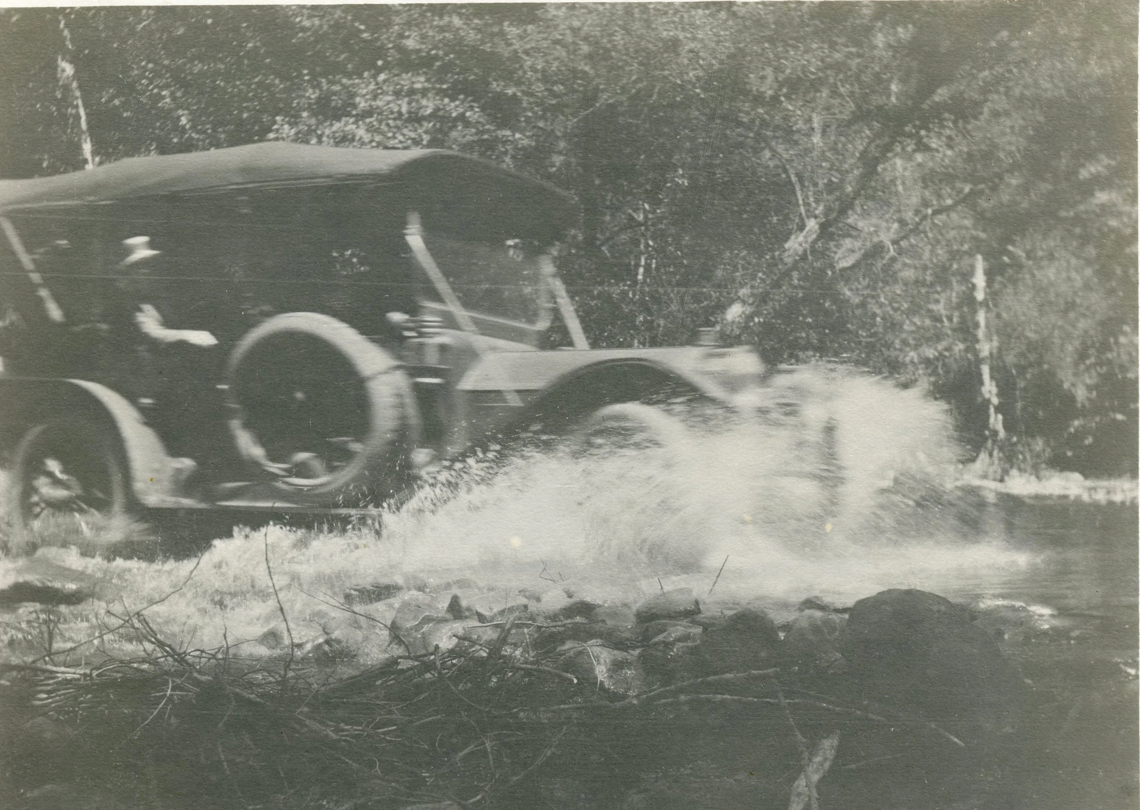 #122218-02 Old photo taken in 1915. Any one know where Lion Head Mountain is? Can you identify either of the cars?